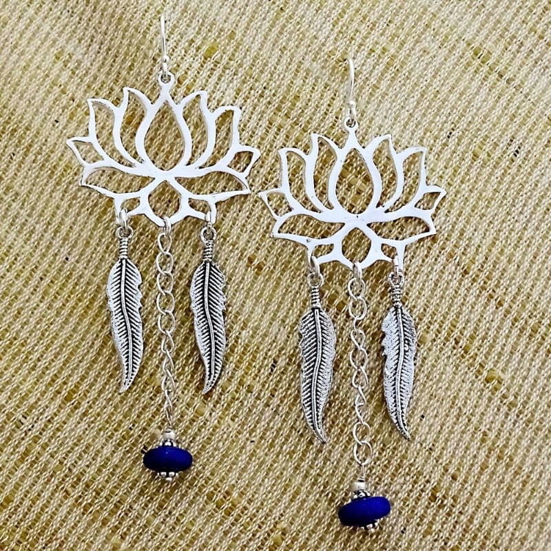 Express your free-spirited style with our Boho Lotus Silver Earrings, designed to blend elegance with earthy charm. Handcrafted with intricate lotus motifs, these earrings embody peace, purity, and timeless beauty. Perfect for festivals, casual outings, or adding a unique touch to your everyday look, their lightweight design ensures comfort without compromising on style. Pair them with ethnic wear or modern outfits for a statement accessory that reflects bohemian soul and cultural grace. A must-have for every jewelry lover.